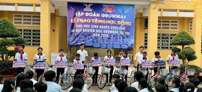 Ngày 16/9, Quỹ Khuyến học GrowMax đã mang những chiếc xe đạp mới tinh đến với các em học sinh có hoàn cảnh khó khăn tại các tỉnh Long An, Sóc Trăng, Bạc Liêu và Cà Mau. Những chiếc xe đạp từ thiện này do DAVI Bikes sản xuất, không chỉ là phương tiện di chuyển mà còn là nguồn động lực giúp các em vững bước trên con đường học tập, gieo mầm hy vọng cho tương lai tươi sáng hơn.